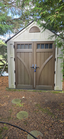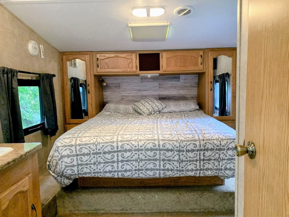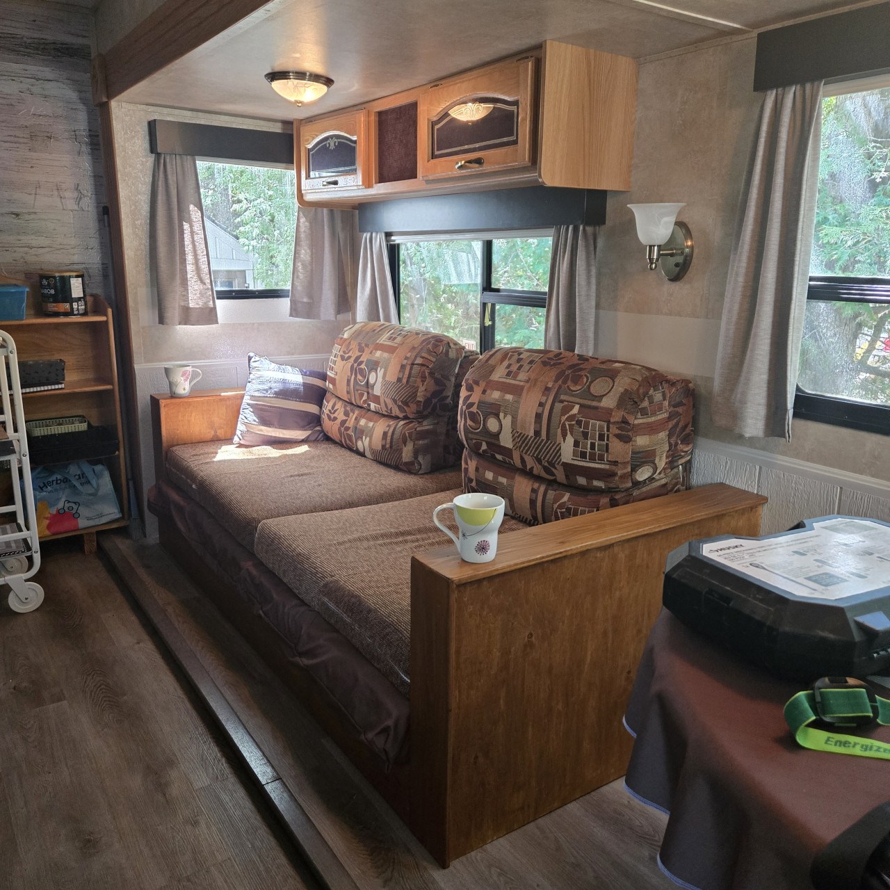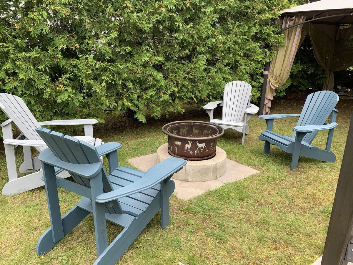Trailer Includes: Stove, microwave, fridge, all furniture, pots and pans, day bed with mattress, oak shelf unit, 2 tvs, dvd player, custom window covers, storage cart, deck, shed, lawn mower, weed trimmer, new fire table with cover, 4 muskoka chairs, BBQ, sleeps 4-6