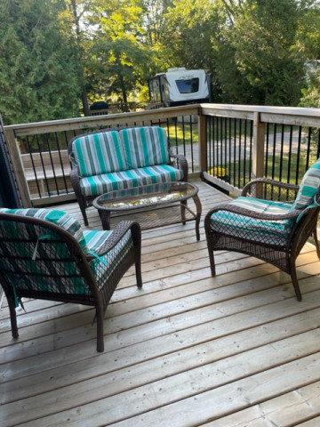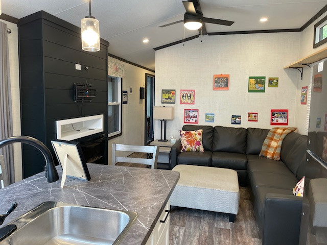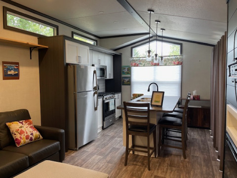 Trailer Includes: add a rpp,. decl. shed, queen bed, pull out sofa, island with 4 chairs, small cabinet, table with 5 chairs, shoe bench, all appliances, forced air heat and AC, all window treatments,